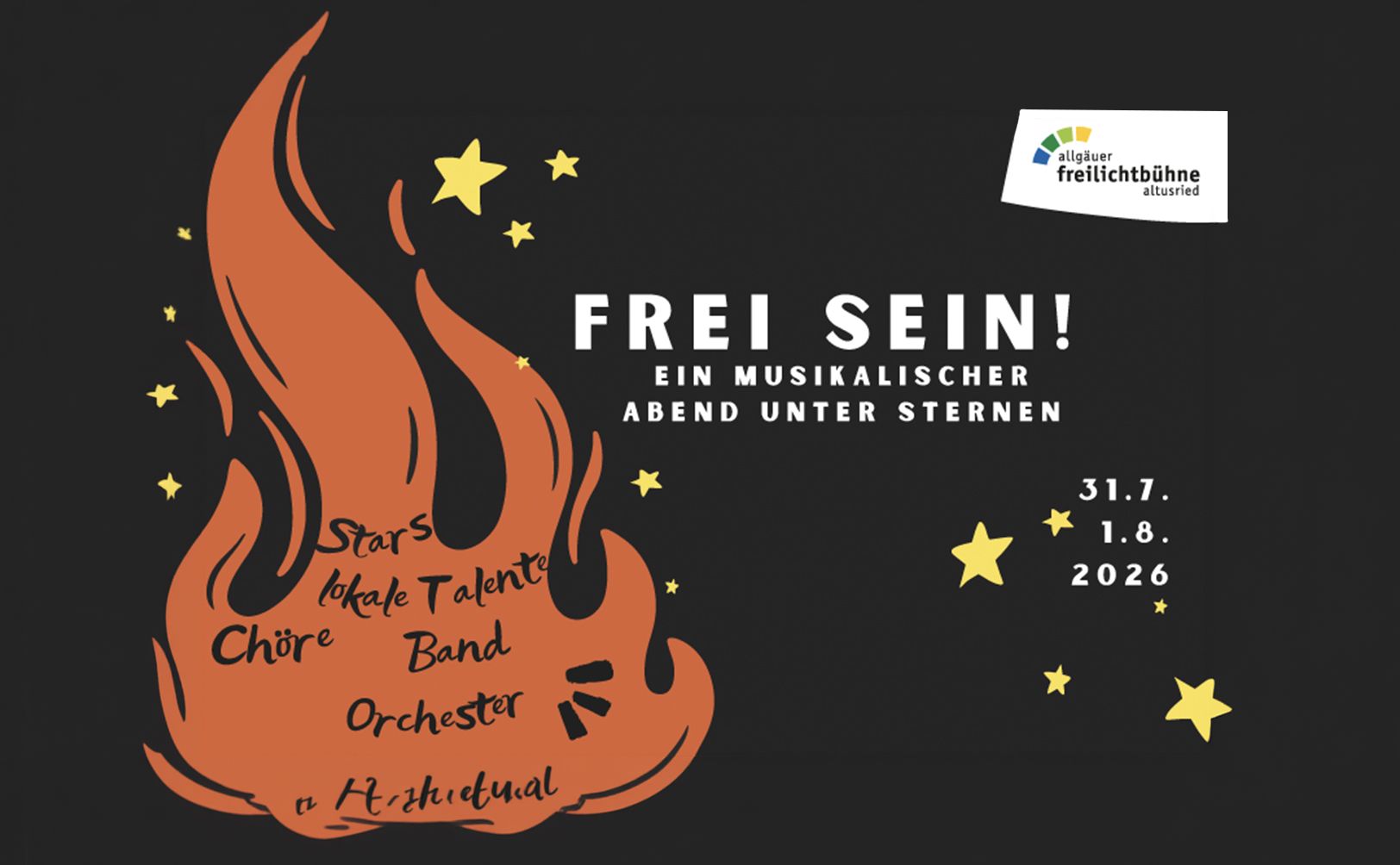 Aber eigentlich ist die Freilichtbühne etwas ganz anderes: Es sind die Menschen. Die vielen hundert Altusrieder, die auf der Bühne und hinter den Kulissen tausenden Zuschauern ein unvergessliches Theatererlebnis bereiten. Sie bauen spektakuläre Bühnenbilder, nähen massenweise Kostüme, sie lernen kämpfen, fechten und reiten, sie begrüßen unsere Gäste und sie geben das alles an die nächsten Generationen weiter. Denn hier in Altusried gilt seit nunmehr 140 Jahren: WIR SIND DAS FREILICHTSPIEL!
