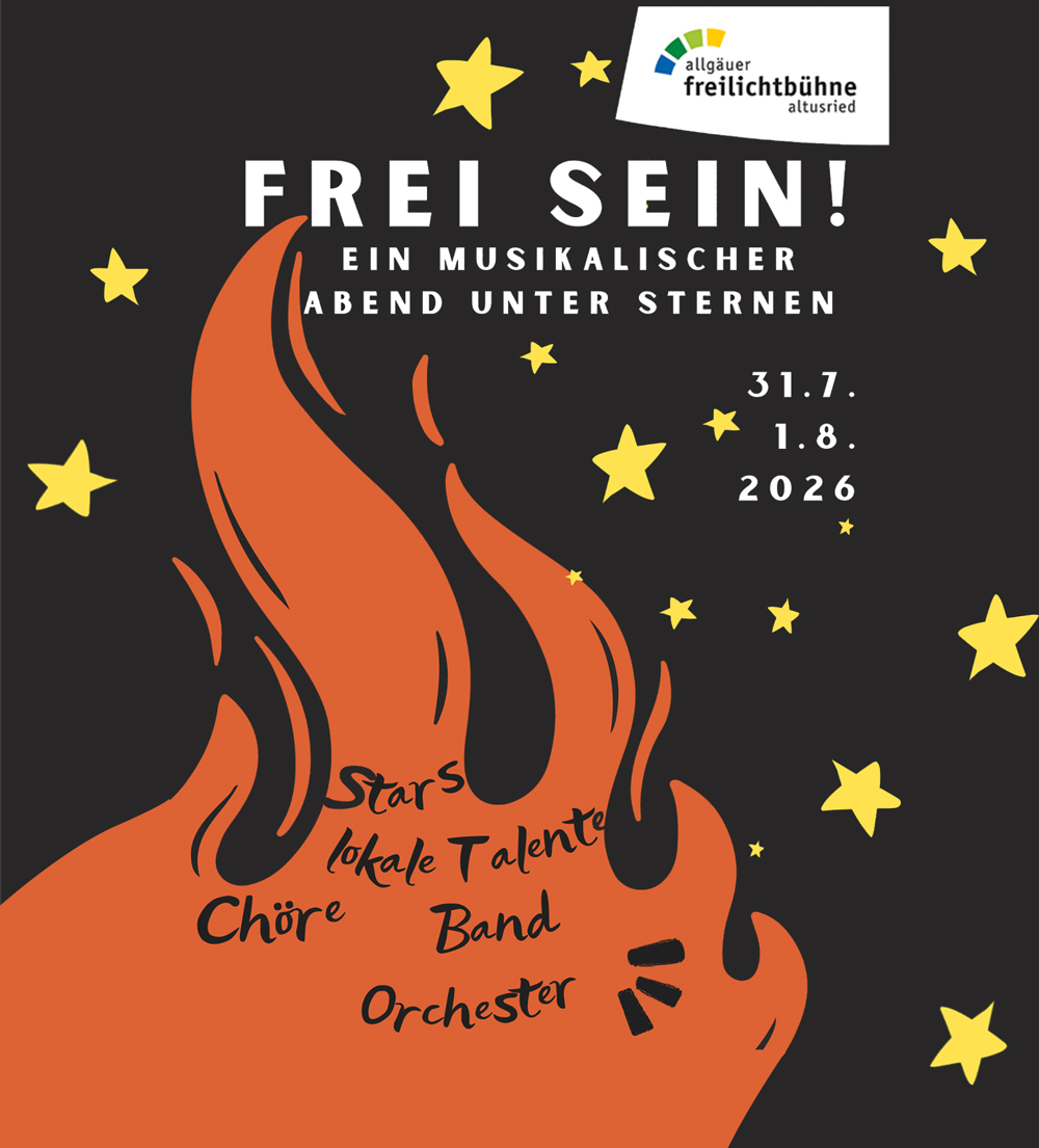 Mit dieser Frage beginnt FREI SEIN! – ein außergewöhnlicher musikalischer Theaterabend, der Chormusik, Orchesterklang, starke Solostimmen und szenisches Spiel zu einem bewegenden Erlebnis verbindet. Unter dem Sternenhimmel der Allgäuer Freilichtbühne entsteht ein Abend voller Sehnsucht, Mut, Kraft und Gänsehautmomenten.